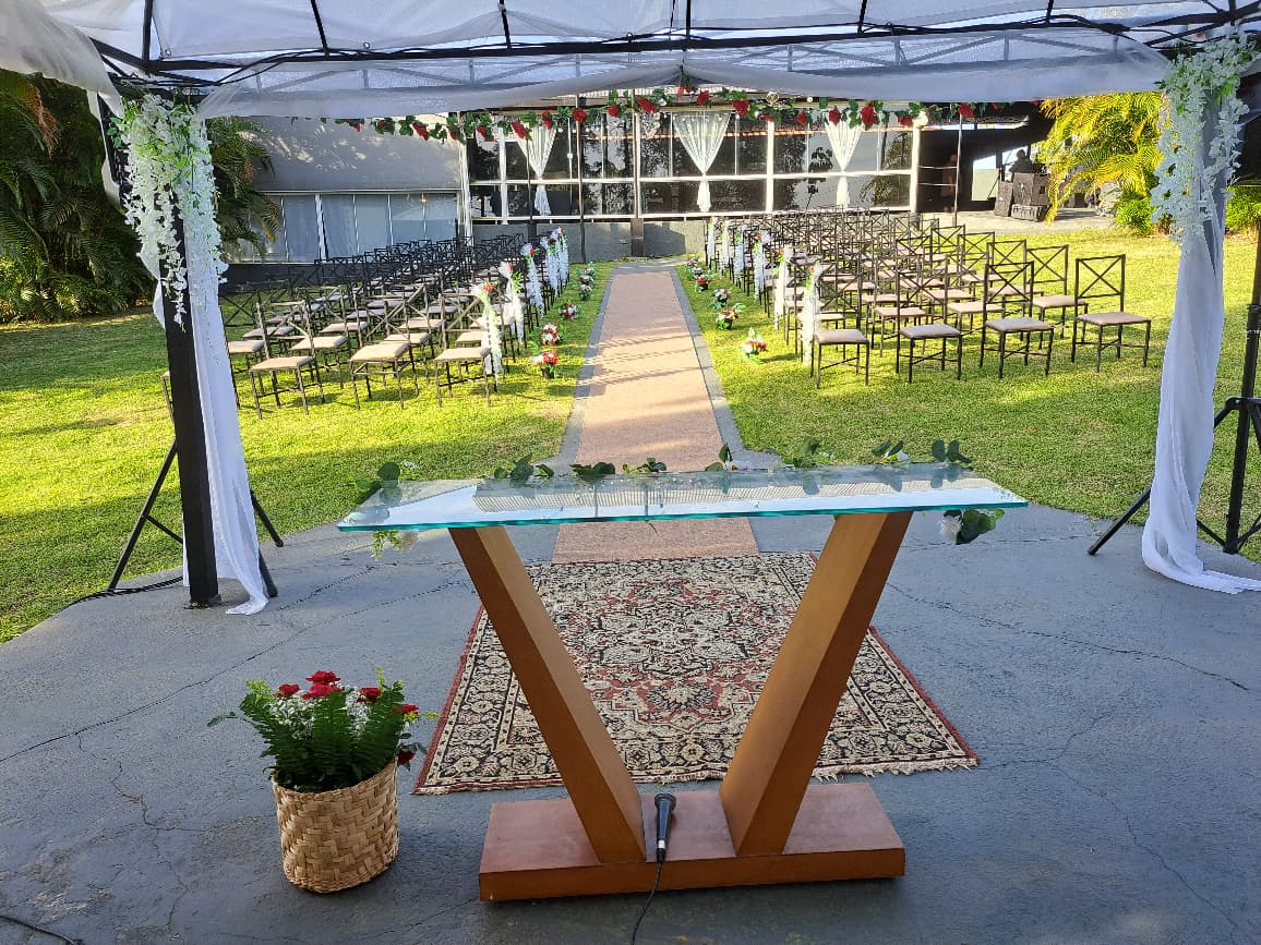 Sim. Temos espaços versáteis tanto ao ar livre quanto salões espaçosos. Você pode realizar a cerimônia no gramado e seguir direto para a recepção, tudo com comodidade e charme.